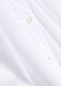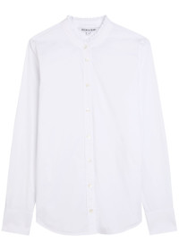 Info & Care Veronica Beard cotton-blend poplin;shirt Stand collar with frilled trim, adjustable button-fastening cuffs, box pleat at back, side splits at curved hem Button fastenings through front 67% cotton, 30% polyamide, 3% elastane Dry clean Size & Fit Length shoulder to hem: 25 inches/ 63.5cm Midweight Slim fit Model is 5'10"/ 178cm and wears a size;US4