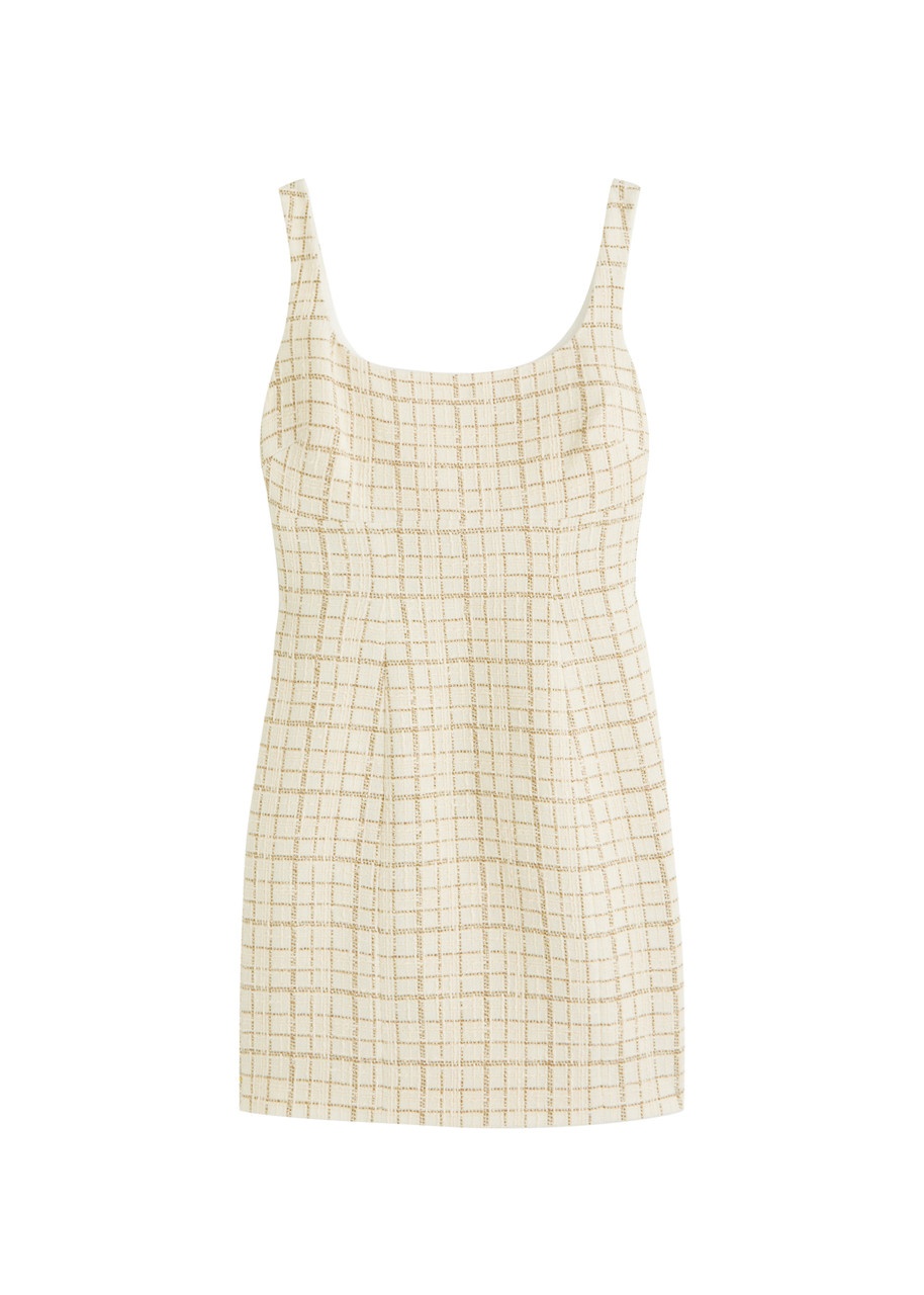 Info & Care Veronica Beard cotton-blend dress Metallic-check design, square-neck, darted, fully lined Concealed hook and zip fastening at back 63% cotton, 19% polyester, 14% viscose, 4% metallised polyester; lining 1: 100% polyester; lining 2: 96% cotton, 4% elastane Dry clean Size & Fit Length shoulder to hem: 33.5 inches/ 85cm Midweight Close fit Model is 5'11"/ 180cm and wears a size;US4