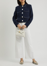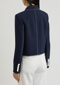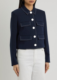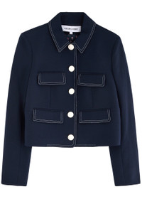 Info & Care Veronica Beard woven jacket Padded shoulders, button-fastening cuffs, four faux front flap pockets, contrasting stitching, fully lined Button-fastenings through front 69% polyester, 28% viscose, 3% elastane Dry clean Size & Fit Length shoulder to hem: 19 inches/ 48cm Midweight Regular boxy fit Model is 5'10"/ 178cm and wears a size US4