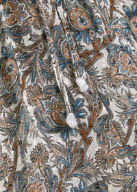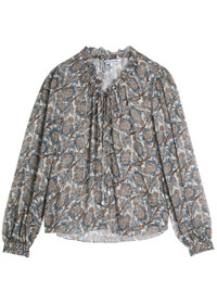 Info & Care Veronica Bears silk-blend blouse Printed, subtle flocked design, drawstring-fastening round-neck with faux pearl ends, balloon sleeves, smocked cuffs,;ruffled trims, side splits, curved hem Button fastenings at front 80% silk, 20% viscose Dry clean Size & Fit Length shoulder to hem: 23 inches/ 58.5cm Midweight; Relaxed fit Model is 5'9"/ 175cm and wears a size US4