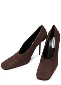 Info & Care Victoria Beckham suede pumps Heel measures approximately 4 inches/ 100mm Square toe Slip-on Size & Fit Only available in full sizes, go up to the nearest whole size if you take a half size