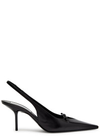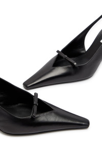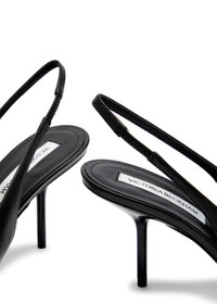 Info & Care Victoria Beckham leather;slingback pumps Heel measures approximately 3 inches/ 75mm Bow applique,;V-cut vamp, partially elasticated slingback strap, pointed toe Slip-on Size & Fit Narrow across the toe Only available in full sizes, go up to the nearest whole size if you take a half size