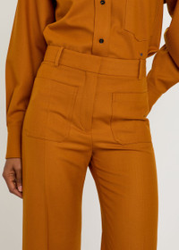 Info & Care Victoria Beckham twill trousers Belt loops, front patch pockets, pressed crease through legs,;back patch pockets Concealed hook, button and zip fastening at front; 53%;polyester, 43% virgin wool, 4% elastane Dry clean Size & Fit Inside leg length: 33 inches/ 84cm Midweight Slim flared-leg cut, high-rise fit Tailored style Model is 5'10"/ 178cm and wears a size;UK8