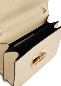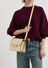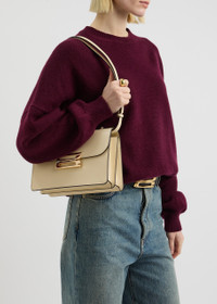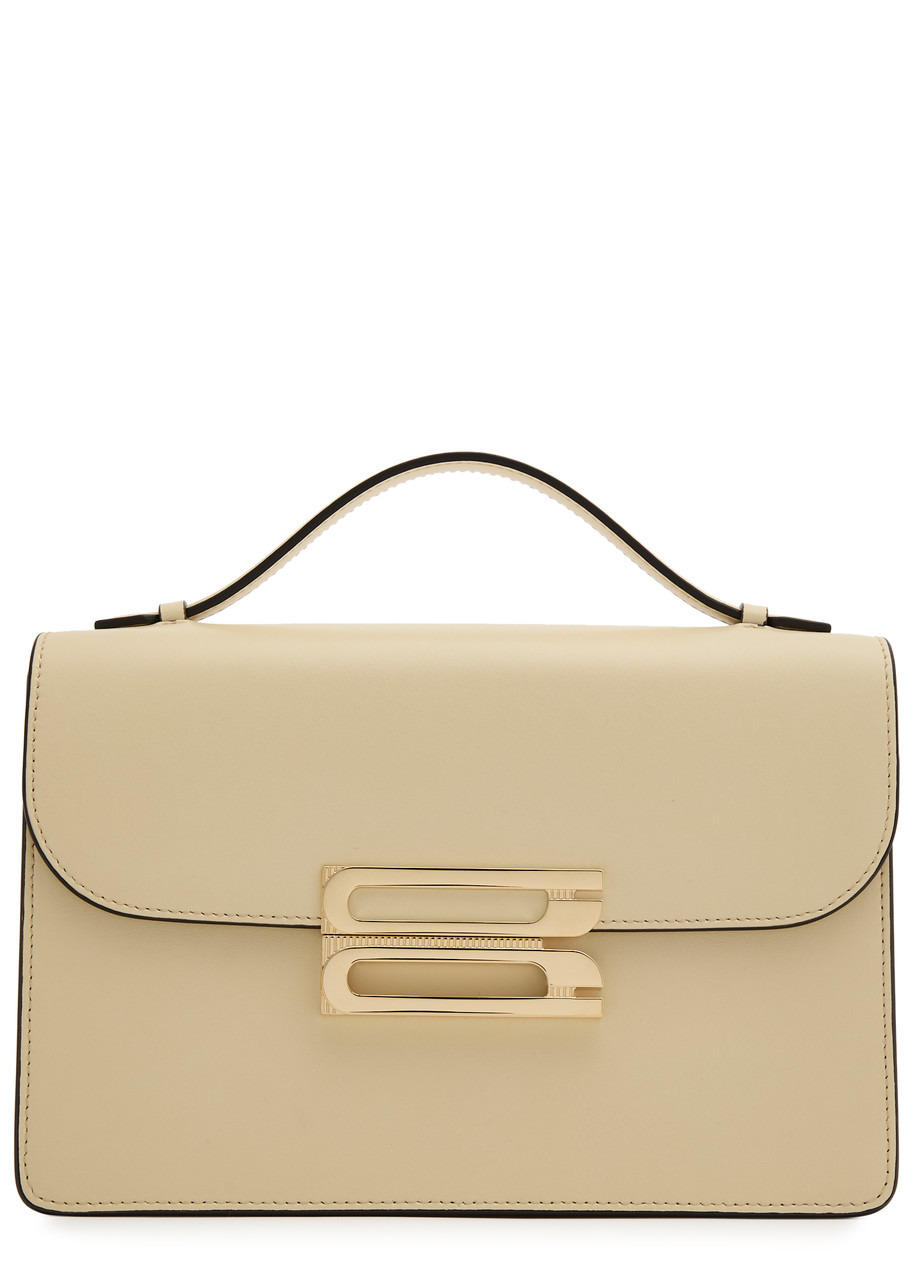 Info & Care Victoria Beckham leather;top handle bag Detachable adjustable shoulder strap, designer plaque, designer stamp and serial number at back, two compartments, internal card slot, fully lined Concealed magnetic press-stud fastening at flap front Size & Fit Width: 9 inches/ 23cm Height: 7 inches/ 18cm Depth: 3.5 inches/ 9cm Top handle drop: 1.5 inches/ 4cm Min. shoulder strap drop: 11 inches/ 28cm Max. shoulder strap drop: 19.5 inches/ 49.5cm