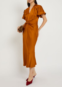 Victoria Beckham Eve Gathered Satin Midi Dress