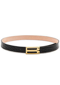 Info & Care Victoria Beckham leather belt; Crocodile effect, designer plaque buckle; Adjustable push-stud fastening Size & Fit Width: 2.5cm Plaque dimensions: 6cm x 2.5cm