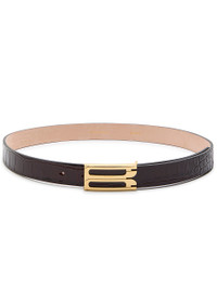 Info & Care Victoria Beckham leather belt; Crocodile effect, designer plaque buckle; Adjustable push-stud fastening Size & Fit Width: 2.5cm Plaque dimensions: 6cm x 2.5cm