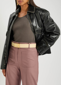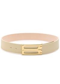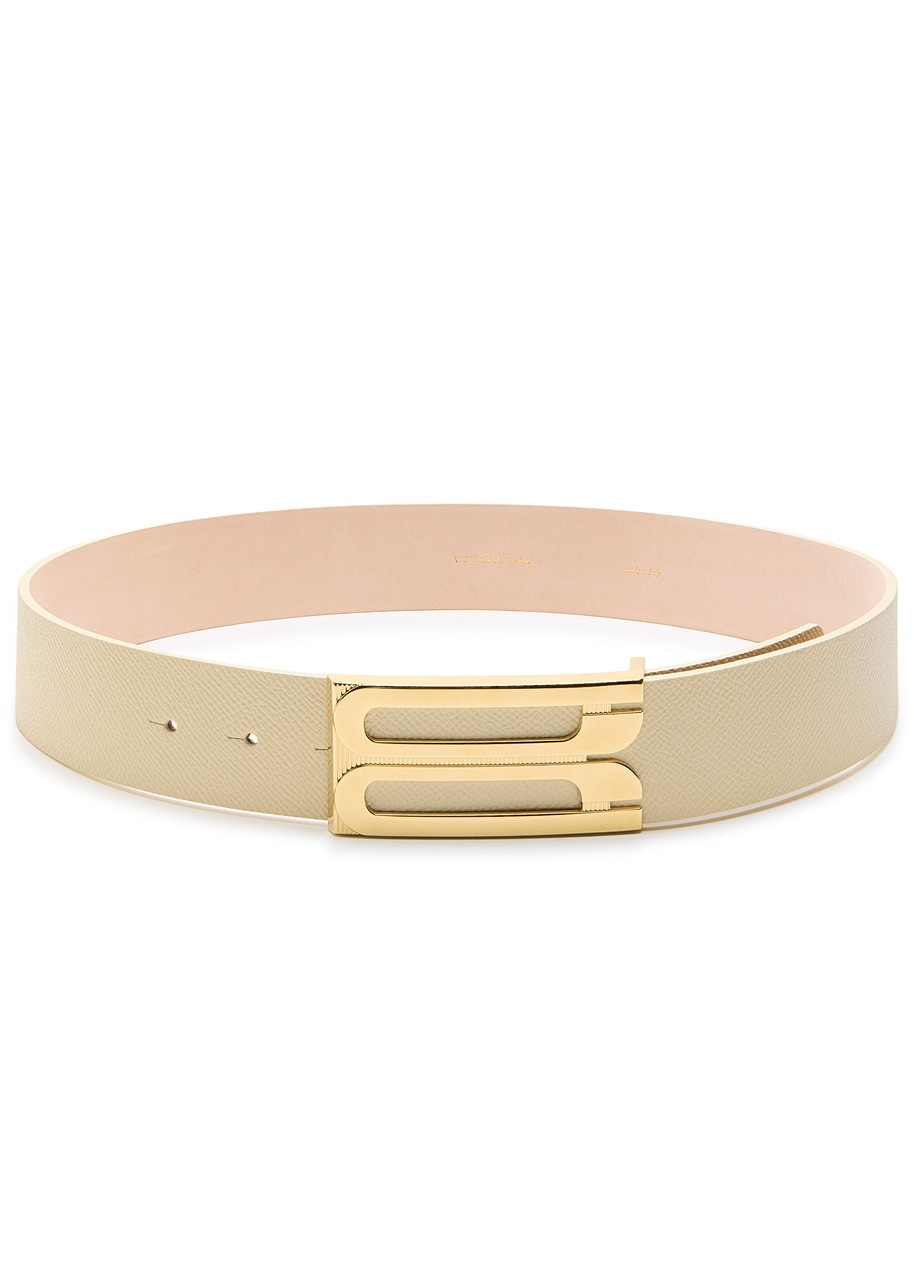 Info & Care Victoria Beckham leather belt; Designer plaque Adjustable push-stud fastening; Size & Fit Width: 4cm Plaque dimensions: 8cm x 4cm
