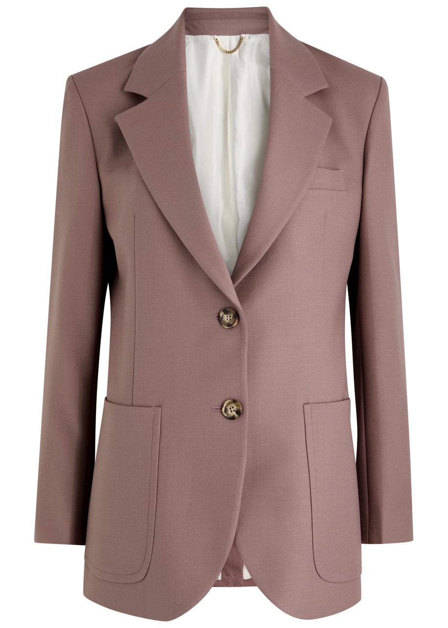 Info & Care Victoria Beckham twill blazer Notched lapels, padded shoulders, button-fastening cuffs, chest slit pocket, darts through waist, two front patch pockets, back vent, fully lined Button fastenings at front; 55%;polyester, 45% virgin wool; lining: 70% cotton, 30% polyamide Dry clean Coordinating items available; Size & Fit Length shoulder to hem: 28.5 inches/ 72.5cm Midweight Regular;fit Model is 5'10"/ 178cm and wears a size;UK8