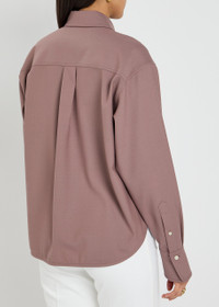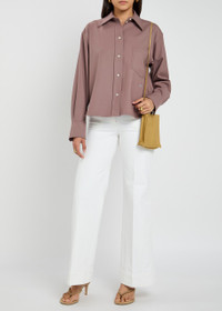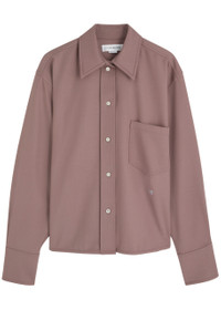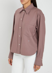 Info & Care Victoria Beckham twill shirt; Pleats at button-fastening cuffs, chest patch pocket, logo embroidery, box pleat at back, curved hem,;longer back hem Button fastenings through front; 53%;polyester, 43% virgin wool, 4% elastane Dry clean Coordinating items available; Size & Fit Length shoulder to hem:;23.5 inches/ 59.5cm; back: 26.5 inches/ 67.5cm Midweight Relaxed fit Model is 5'10"/ 178cm and wears a size;UK8