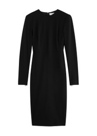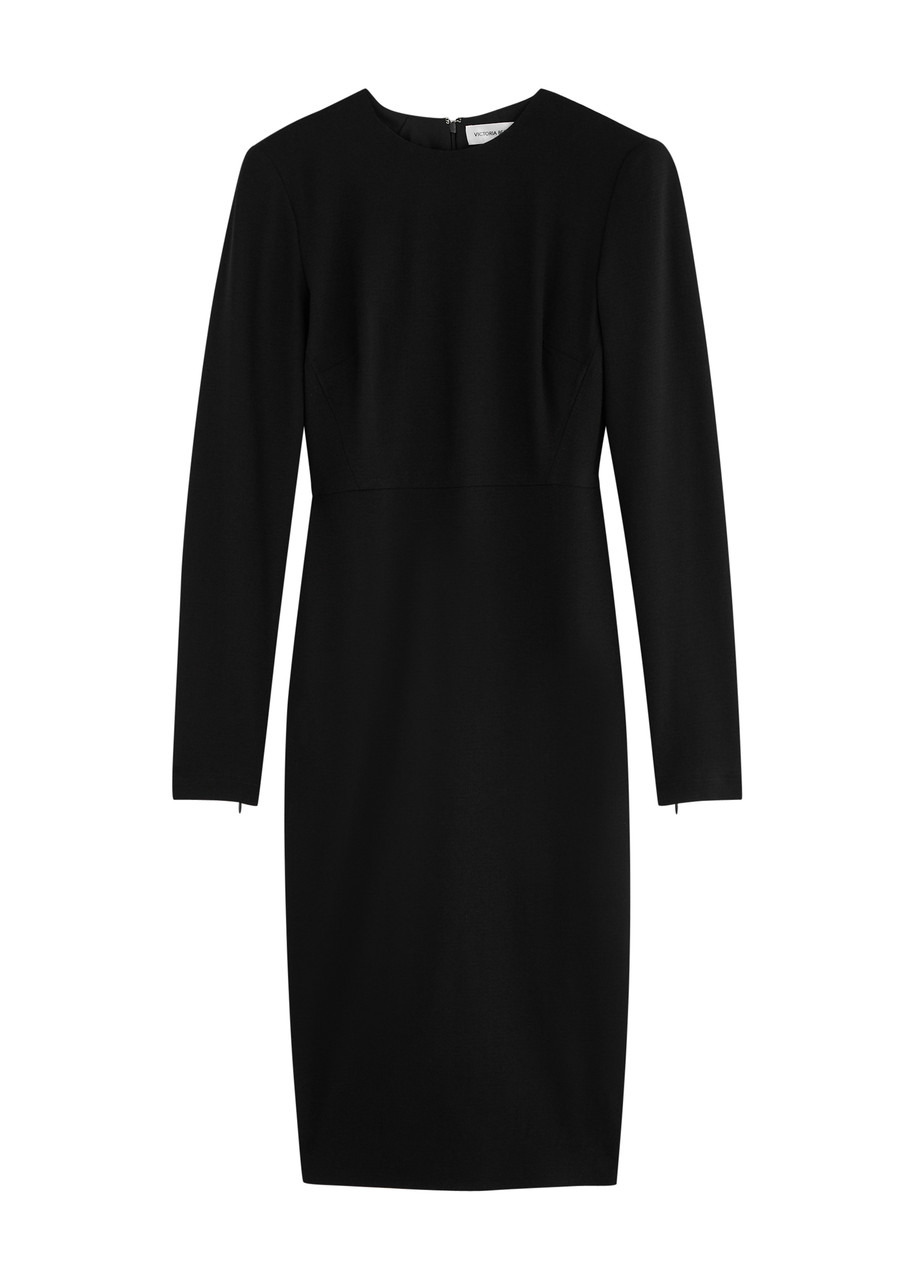 Info & Care Victoria Beckham;wool-blend dress Round-neck, padded shoulders, zip-fastening cuffs, darted bodice, back vent, partially lined Concealed;zip fastening at back 89% virgin wool, 7% polyamide, 4% elastane Dry clean Size & Fit Length shoulder to hem: 44.5 inches/ 113cm Midweight Slim fit Model is 5'9"/ 175cm and wears a size UK8