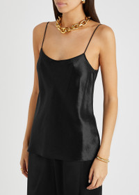 INFO & CARE - Vince hammered satin top - Adjustable spaghetti shoulder straps - Slips on - 100% acetate - Hand wash SIZE & FIT - Length shoulder to hem: 25.5 inches/ 65cm - Midweight - Slim fit - Model is 5'9"/ 175cm and wears a size small