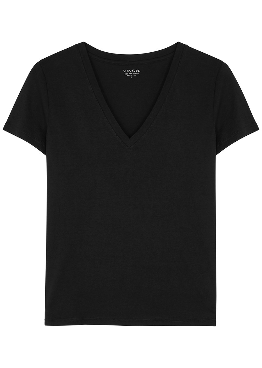 INFO & CARE - Vince Pima cotton fine jersey T-shirt - V-neck - Slips on - 100% Pima cotton SIZE & FIT - Machine wash - Length shoulder to hem: 22 inches/ 56cm - Lightweight - Relaxed semi-fitted style - Model is 5'10"/ 178cm and wears a size small