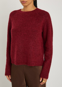 Info & Care Vince brushed alpaca-blend jumper Crew-neck, dolman sleeves, ribbed trims Slips on 55% alpaca, 43% nylon, 2% spandex Hand wash Size & Fit Length shoulder to hem: 22 inches/ 56cm Midweight Boxy fit Model is 5'10"/ 178cm and wears a size small