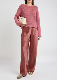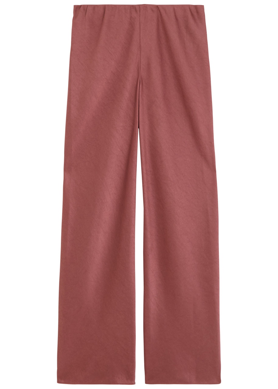 Info & Care Vince satin trousers Elasticated waistband Pull on 55% polyester, 45% recycled polyester Machine wash Size & Fit Inside leg length: 32 inches/ 81.5cm Midweight Wide-leg cut Model is 5'9"/ 175cm and wears a size small