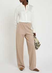 Info & Care Vince wool-blend trousers Elasticated waistband Pull on 49% wool, 38% polyester, 12% viscose, 2% elastane Hand wash Size & Fit Inside leg length: 32 inches/ 81.5cm Midweight High-rise fit, wide-leg cut Model is 5'9"/ 175cm and wears a size small