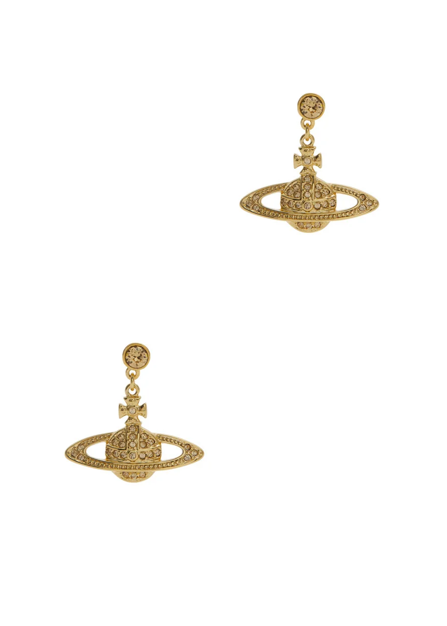 INFO & CARE - Vivienne Westwood drop earrings - Signature orb design, pavé crystal embellishments - Butterfly-fastening for pierced ears - Presented in a designer-stamped box - Please note, we are unable to refund or exchange for pierced earrings - Gift boxes are subject to availability SIZE & FIT - Drop: 2.5cm