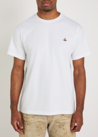 Info & Care Vivienne Westwood stretch-cotton t-shirt Ribbed crew-neck, signature orb embroidery at chest Slips on 98% cotton, 2% elastane Machine wash Size & Fit Length shoulder to hem: 27 inches/ 68.5cm Midweight Relaxed fit Model is 6'2"/ 188cm, chest size 38 inches and wears a size medium