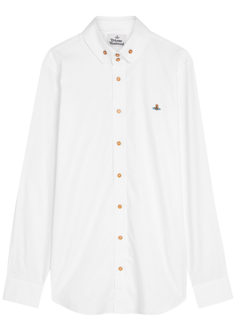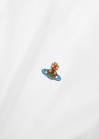 Info & Care Vivienne Westwood cotton shirt; Button-down collar, button-fastening cuffs, signature orb embroidery, curved hem Button fastenings through front; 100% cotton; Machine wash Size & Fit Length shoulder to hem: 31 inches/ 79cm; Midweight Regular fit; Model is 6'1"/ 185cm, chest size 38.5 inches and wears a size IT48;