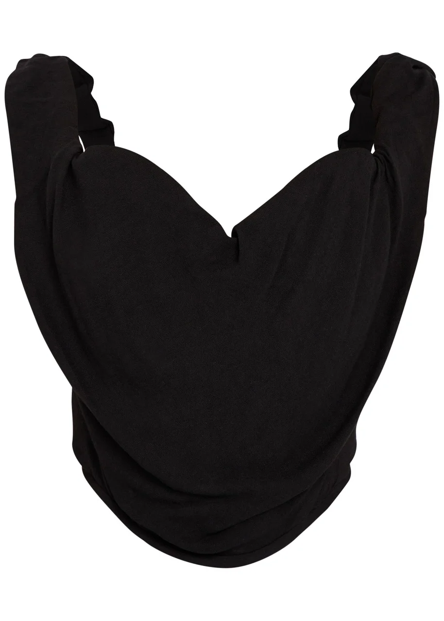 Info & Care Vivienne Westwood woven top Draped design, sweetheart-neck, elasticated shoulder straps, boning through corset bodice, curved front hem, fully lined Zip fastening through back Fabric 1: 100% viscose;; fabric 2: 84% polyamide, 16% elastane; lining: 71% cupro, 29% cotton Dry clean Size & Fit Length shoulder to hem: 18 inches/ 46cm Midweight Slim fit, draped neckline Cropped; Model is 5'10"/ 178cm and wears a size;IT40