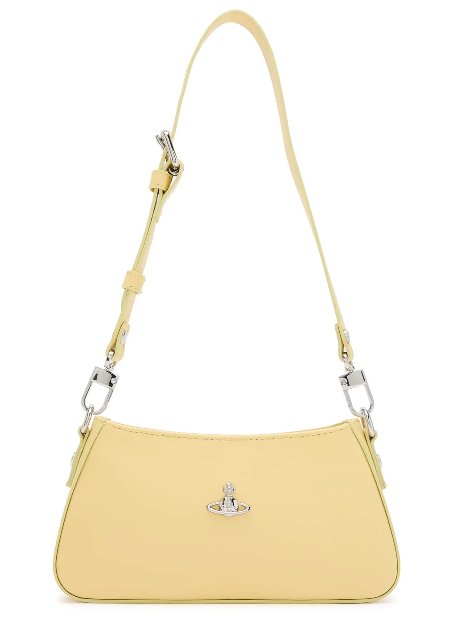 Info & Care Vivienne Westwood leather shoulder bag Detachable adjustable shoulder strap, signature orb plaque, internal card slot, fully lined; Zip fastening across top Size & Fit Width: 9 inches/ 23cm Height: 4.5 inches/ 11.5cm Depth: 1 inch/ 2.5cm Shoulder strap drop: 10 inches/ 25.5cm