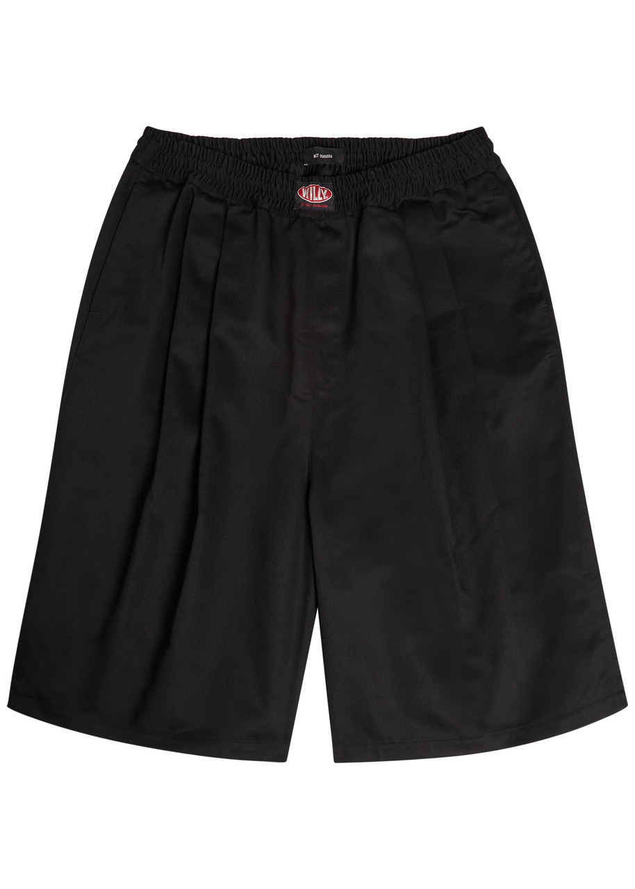 Info & Care Willy Chavarria canvas shorts Designer plaque at elasticated waist, concealed drawstring, pleats, side slip pockets, back slit pocket Pull on 65% polyester, 35% cotton Dry clean Size & Fit Length;waist to hem: 27 inches/ 68.5cm Midweight Oversized style Model is 6'1"/ 185cm, chest size 38.5 inches and wears a size medium