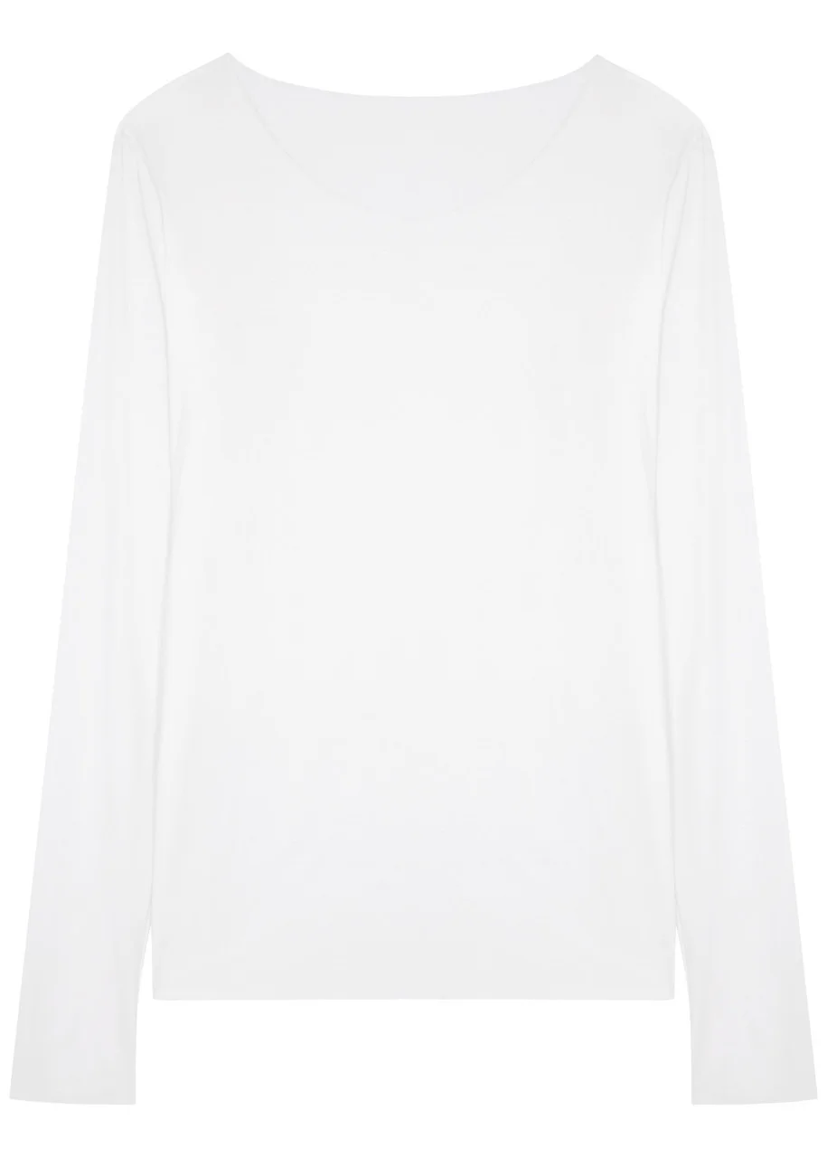 INFO & CARE - Wolford stretch-jersey top - Cradle to Cradle Certified™ meaning all components are biodegrade or depolymerize to help reduce waste - Scoop-neck, raw unfinished trims - Slips on - 89% modal, 11% elastane - Machine wash SIZE & FIT - Length shoulder to hem: 25 inches/ 63.5cm - Midweight - Semi-fitted style - Model is 5'9"/ 175cm and wears a size small