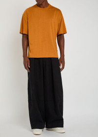 Info & Care YMC Lyocell-blend jersey T-shirt Crew-neck, dropped shoulders, designer tag at side Slips on 67% Lyocell, 33% cotton Machine wash Size & Fit Length shoulder to hem: 27 inches/ 68.5cm Midweight Boxy, relaxed fit Model is 6'1"/ 185cm, chest size 38.5 inches and wears a size medium