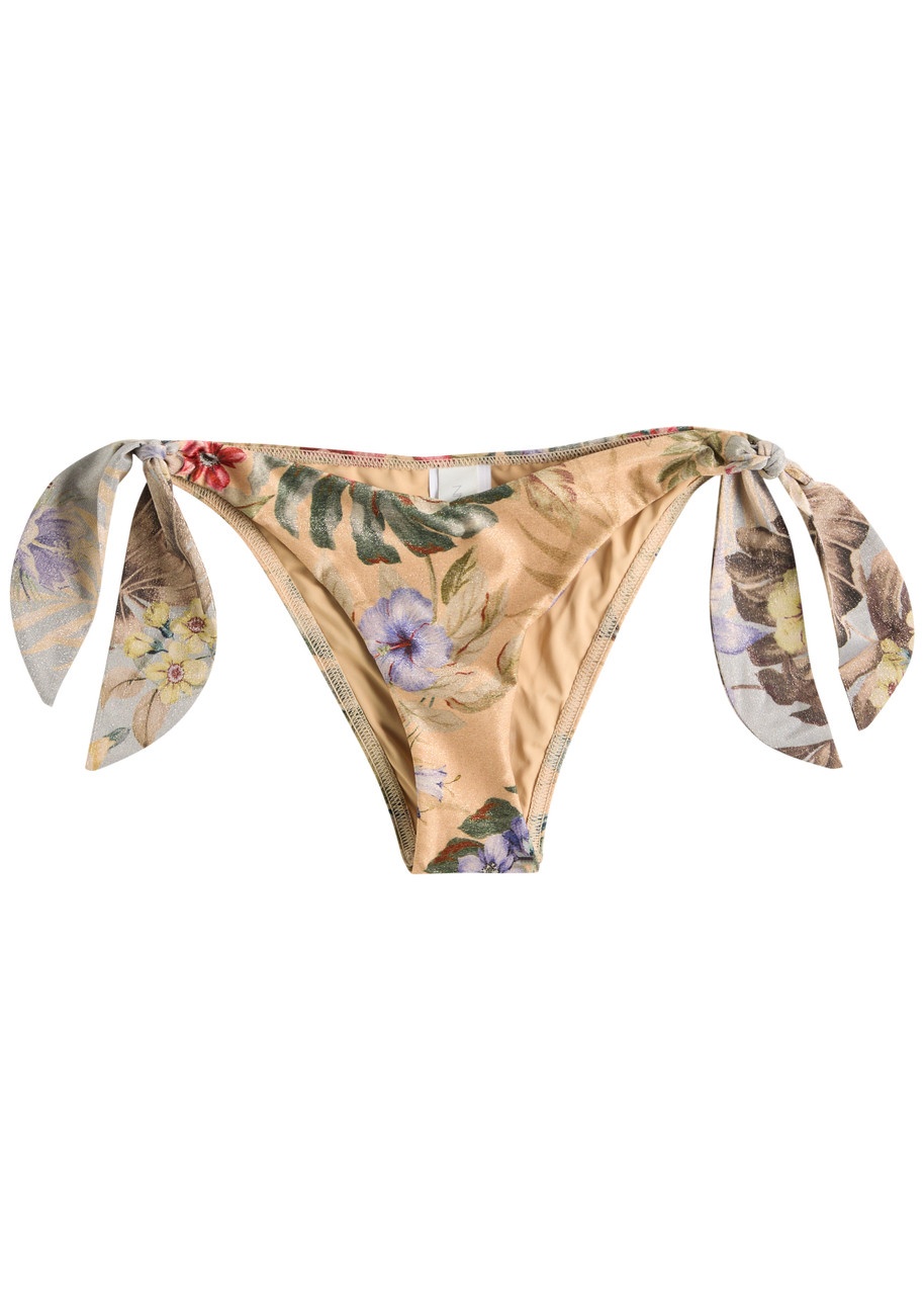 Info & Care Zimmermann nylon-blend bikini briefs Metallised floral print, fully lined Tie-fastening sides 64% polyester, 16% metallic fibre, 12% polyamide, 8% elastane; lining: 92% recycled polyamide, 8% elastane Hand wash Size & Fit Model is 5'11"/ 180cm and wears a size;0
