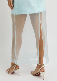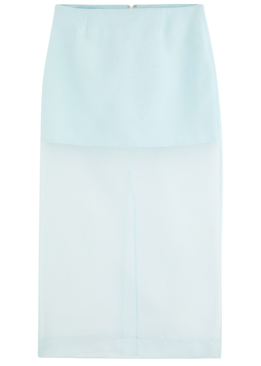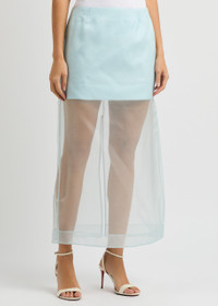 Style Notes Zimmermann's Crush layered;midi skirt exudes modern femininity. First shown on the label's resort 25 runway, it's crafted from delicate silk-organza to a pencil silhouette that features a mini-length underskirt.; Info & Care Zimmermann sheer silk-organza skirt Back vent, partially lined Concealed zip fastening at back 100% silk; lining: 100% cotton Dry clean Size & Fit Length waist to hem: 35.5 inches/ 90cm Midweight Slim fit Model is 5'10"/ 178cm and wears a size 0