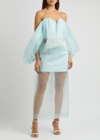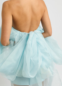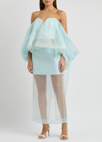 Style Notes The Crush top by Zimmermann is made from silk-organza that enhances its cloud-like shape. Designed with a boned bodice with a plunging wired neckline, this strapless style is finished with gathers of the sheer material at the cuffs and back. Info & Care Zimmermann silk-organza top Sheer overlay, strapless, plunge sweetheart neck with gathered trim, pleated draped panels around arms, tie-fastening panels at back, fully lined Concealed zip and hook fastenings at back 100% silk; lining: 100% cotton Dry clean Size & Fit Length shoulder to hem: 18 inches/ 46cm Midweight Close fit, flared overlay Model is 5'10"/ 178cm and wears a size 0