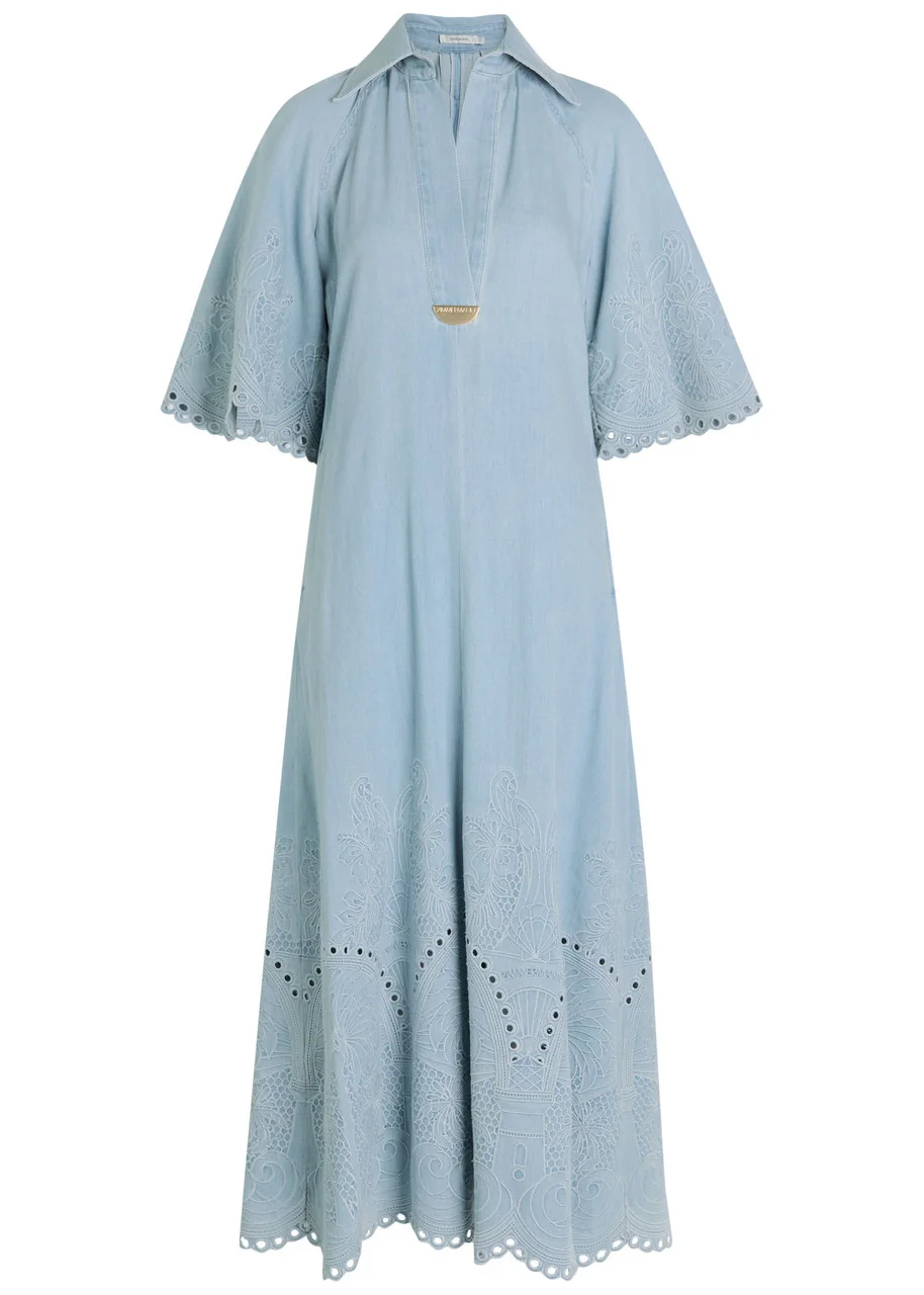 Zimmermann Daylight Embroidered Denim Midi Dress