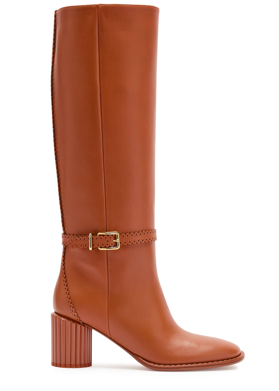 Info & Care Zimmermann leather knee-high boots Ribbed block heel measures approximately 2.5 inches/ 70mm Buckle-fastening strap with perforated details at scalloped trim, round toe Zip fastening at side Size & Fit Only available in full sizes, go up to the nearest whole size if you take a half size