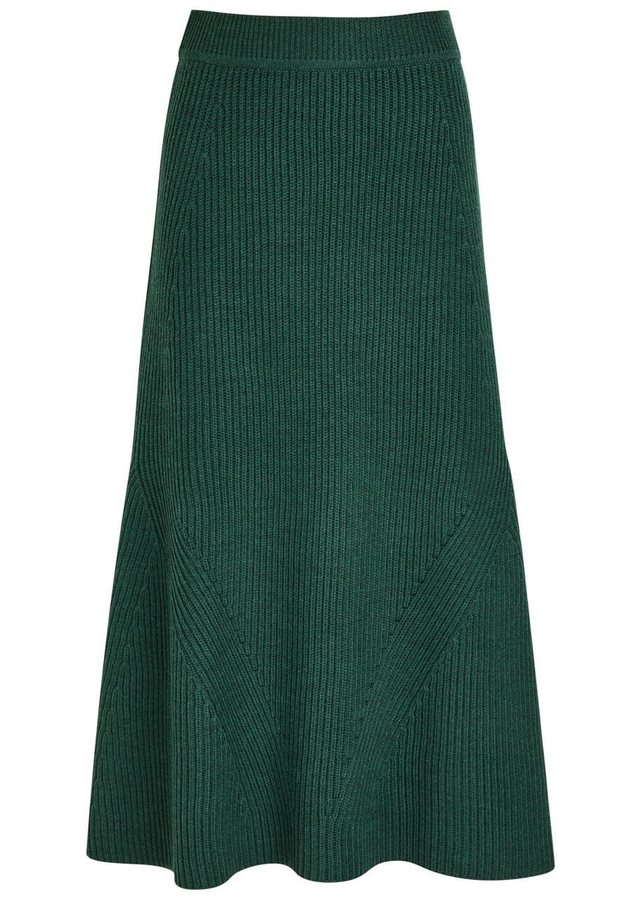 Info & Care Zimmermann knit skirt; Ribbed, elasticated waist Pull on 100% wool Dry clean Co-ordinating item available Size & Fit Length waist to hem: 27 inches/ 68.5cm Heavyweight Slim fit, flared hem Model is 5'10"/ 178cm and wears a size 0