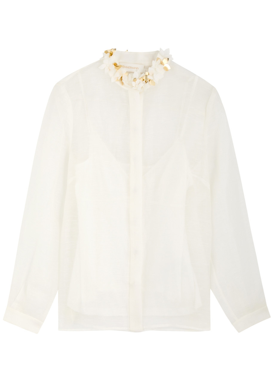 Zimmermann Illuminate Embellished Linen-blend Blouse