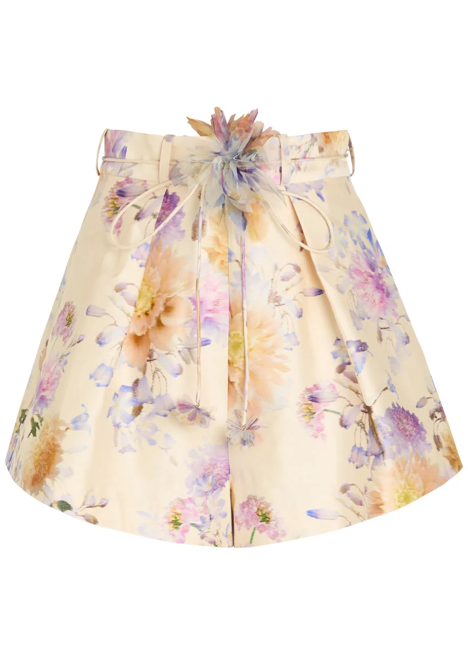 Zimmermann Luna Floral Belted Silk-blend Shorts