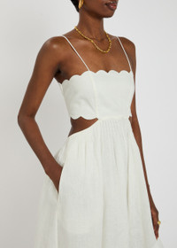 Rhiannon cutout pleated scalloped linen-voile midi dress Ivory