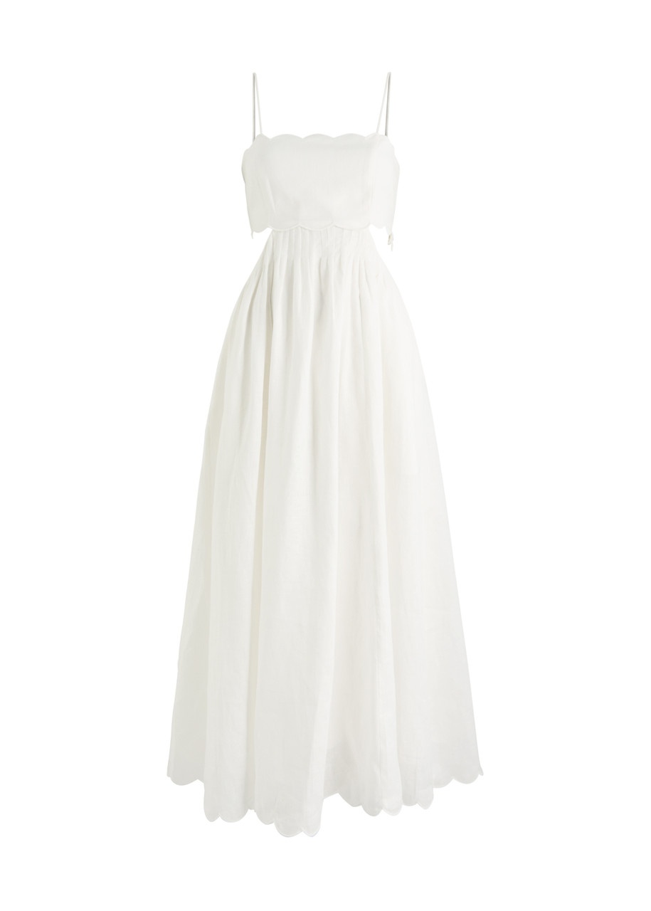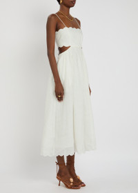 Zimmermann Rhiannon Scallop Linen Midi Dress