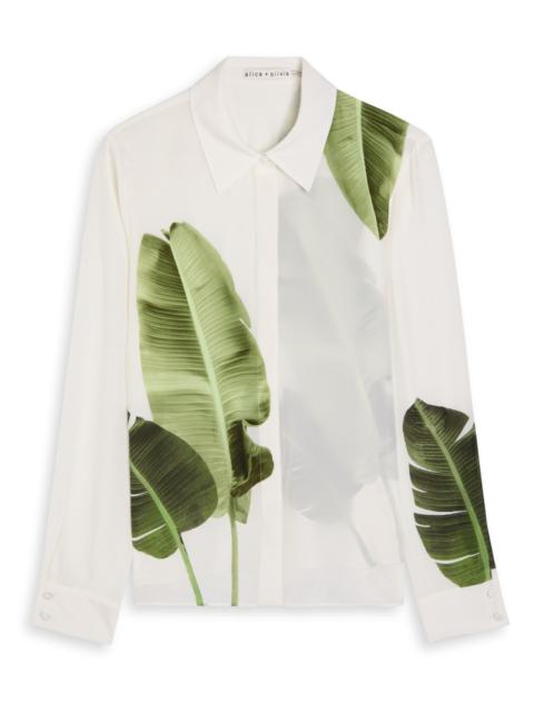 Alice + Olivia Willa Printed Semi-sheer Silk Shirt