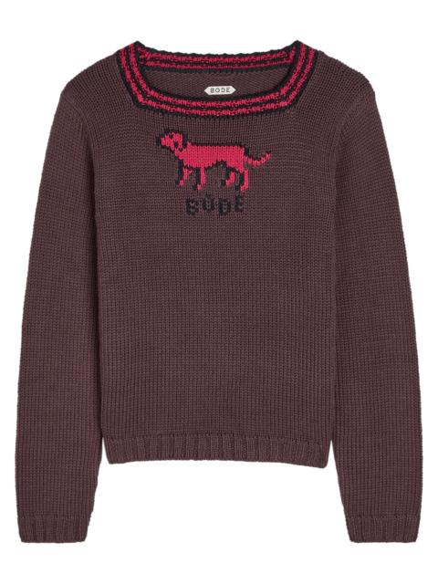 Bode Lapdog Intarsia Cotton and Wool-blend top