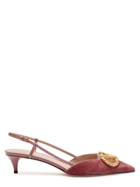 Valentino Vlogo Velvet and Leather Slingback Pumps