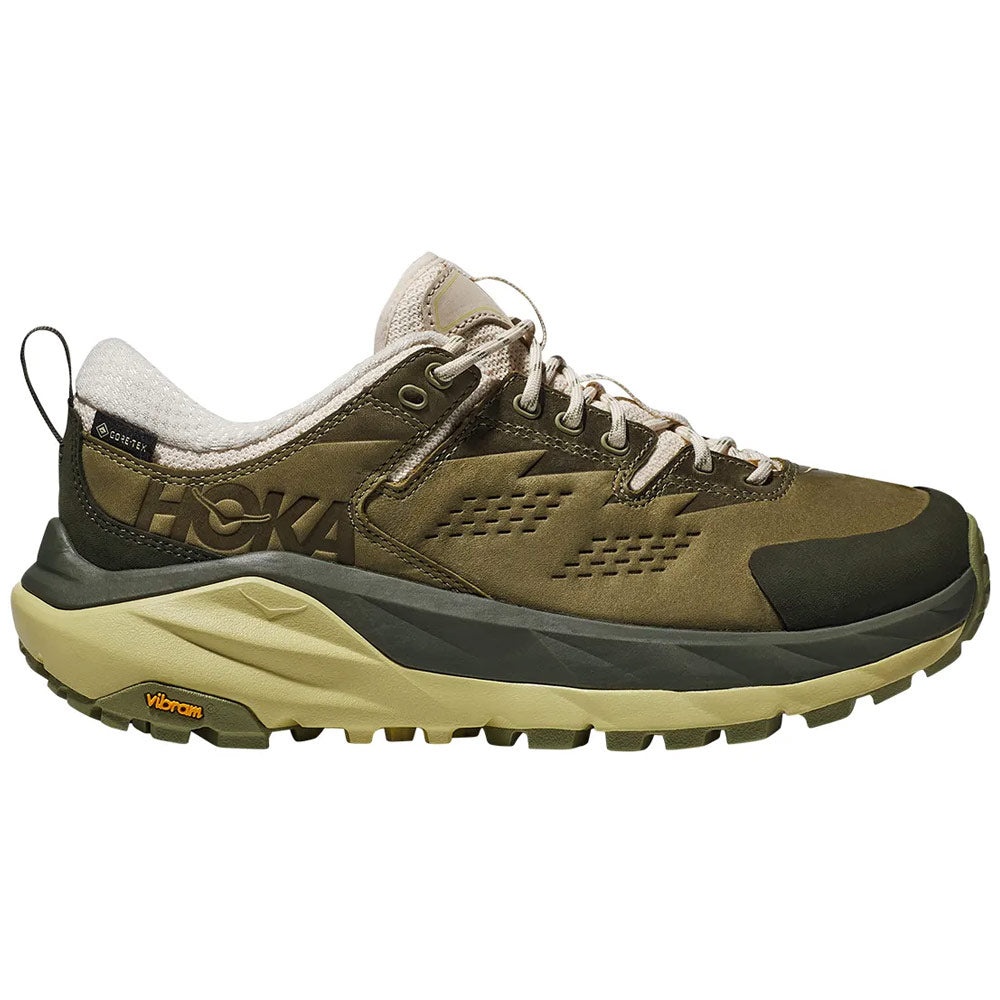 HOKA | SKU: 1123114-FNN Conquer trails with the HOKA Kaha Low GTX, crafted for strength and support. The innovative design boasts a waterproof GORE-TEX bootie, plush EVA layer, and Vibram® Megagrip traction, catering to every adventurer's needs. Embrace the elements, tackle ascents with ease, and accelerate your descents — all in unmatched comfort. Nubuck Leather Upper Best For: Hiking Waterproof GORE-TEX Bootie EVA Top Layer Multidirectional Lugs Heel Pull Vibram Megagrip Outsole Heel To Toe Drop: 6mm