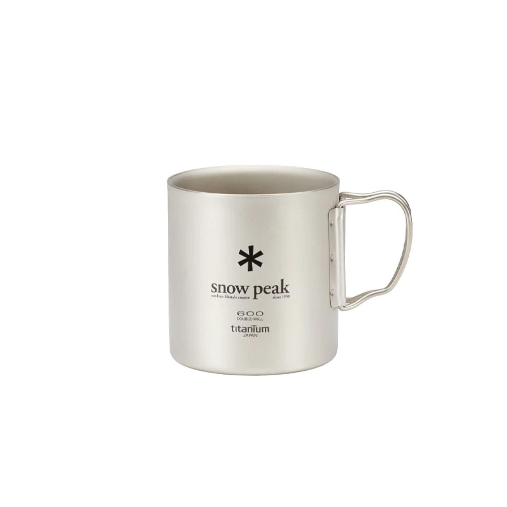 Snow Peak | SKU: MG-054R Crafted from Japanese Titanium, the Ti-Double 600 is an ultralight insulated mug. Use it during your day-to-day or add it to backpacking kits for a reliable drinkware staple. The double-wall insulation will keep beverages hot or cold and the foldable handles offer compact storage. Pair the Ti-Double 600 with the Titanium French Press for an on-the-go coffee set. Please note: double-wall titanium cannot be used for cooking or placed over a heat source. MATERIAL Titanium CONTENTS Ti-Double 600 Mug