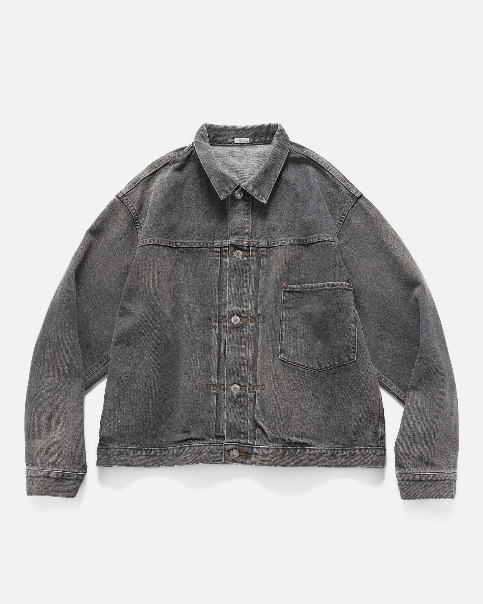 Designed for daily wear with lasting visual character, this jacket is crafted from 14oz air-spun denim, dyed to create a look reminiscent of vintage denim while being resistant to fading. Inspired by the earliest European Levi’s models, it features a clean, utilitarian design with a low yoke, flapless chest pocket, and an unbroken back panel for a minimalist look. The slightly oversized fit offers comfort and easy layering, while the iron tuck buttons add vintage authenticity and will oxidize with age. Each piece is uniquely processed for a one-of-a-kind texture, fading, and wear pattern. DETAILS - 25AAP-01-41 - 100% Cotton - 14oz air-spun denim - Hand-processed - Vintage wash treatment - Relaxed fit - Standard collar - Pleated button front closure - Chest patch pocket - Button cuffs - Original iron tuck buttons - Made in Japan
