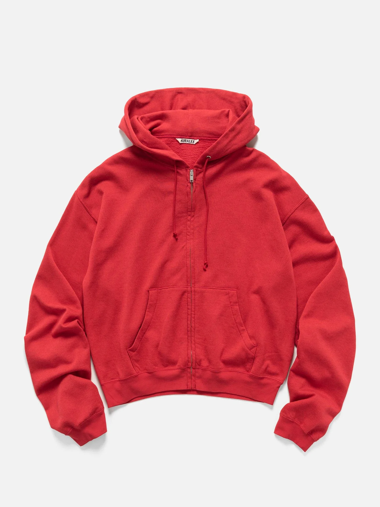 The Auralee High Twist Light Sweat Zip Hoodie is crafted from a lightweight sweat fabric that balances structure with a soft, airy feel. High-twist fine cotton forms the outer surface, giving it a crisp, dry texture, while the reverse blends cotton and silk, softly brushed for a smooth touch against the skin. A cotton-wool layer adds subtle volume, creating a fabric that feels both light and supple. The relaxed silhouette drapes naturally, creating a refined balance of comfort and understated sophistication, finished with a zip front and hood for added versatility. DETAILS - A26SP01MU - 85% Cotton 10% Wool 5% Silk - Slim, cropped fit - Front zip closure - Split kangaroo pocket - Slight dropped shoulder construction - Ribbed cuffs and hem - Made in Japan