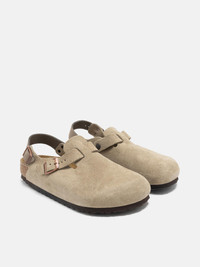 The Tokio II refines Birkenstock’s classic Boston clog with a suede upper and tonal nubuck leather backstrap for added security and comfort. Its contoured cork-latex footbed molds to the foot with wear, while a suede lining and flexible EVA sole ensure all-day ease. Adjustable front and back straps allow a customizable fit, making it a versatile option for everyday wear. DETAILS - 1028287 - Suede upper - Nubuck leather backstrap - Suede footbed lining - Cork footbed - Original anatomically shaped BIRKENSTOCK soft footbed - Natural leather insole - EVA sole - Strap and buckle closure - Made in Germany