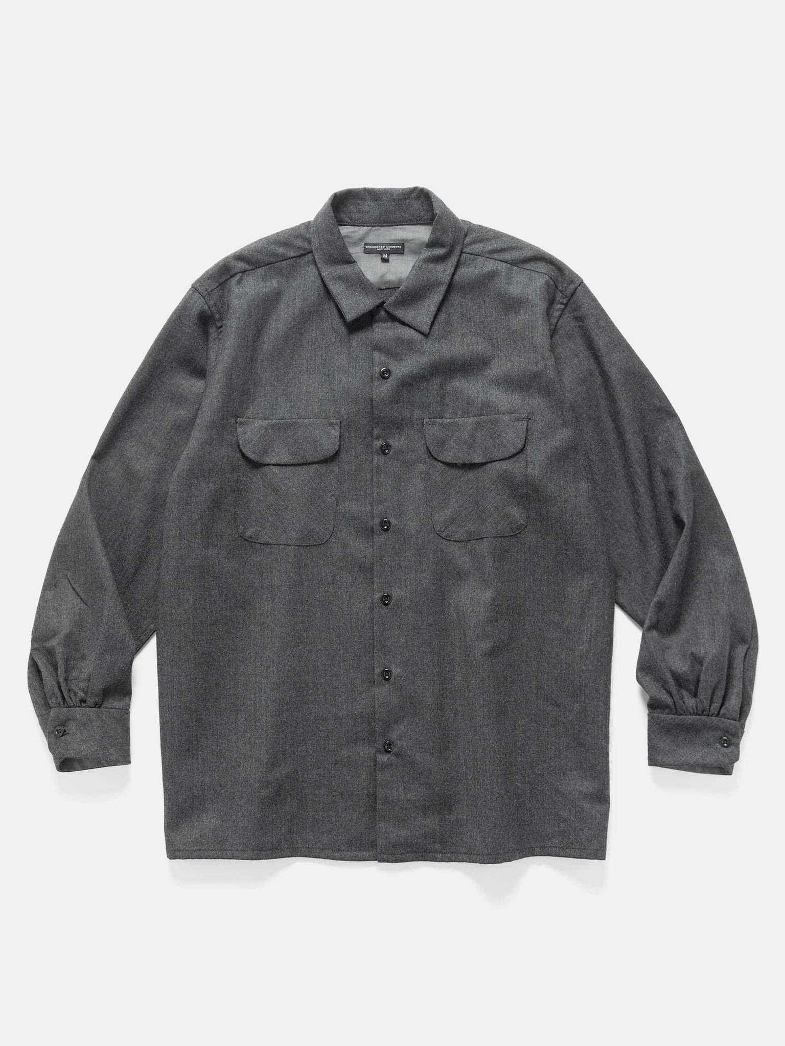 Engineered Garments reimagines the vintage-inspired Classic Shirt in heavyweight worsted wool for structure and warmth. The boxy silhouette is balanced with a convertible collar, pleated shoulders, and two flap chest pockets for utility. Satin lining at the collar, yoke, and cuffs adds a refined contrast, making this piece both rugged and elevated. DETAILS - 25F1A005 - 100% Wool - Relaxed fit - Partial satin lining - Convertible collar - Button closure - Button cuffs - Flap closure patch chest pockets - Made in USA