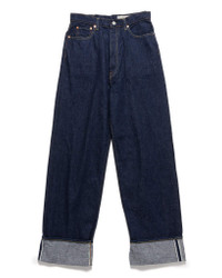 The Kapital 12oz Denim 5P NEW MOMONROE reimagines the brand's signature high-waisted silhouette with a fresh perspective. Featuring a rounded waist and deep rise, this design offers a flattering, elevated fit with straight legs that provide a touch of room. Designed with natural indigo dyes and genuine leather accents, this piece embodies heritage-inspired artistry with a contemporary edge. DETAILS - K2409LP036 - 100% cotton - 12oz selvedge denim - Indigo dyed - Deep rise, straight silhouette - High, rounded waist - Five pocket design - Button fastening - Zipper fly - Natural leather brand patch - Contrast stitching - Made in Japan