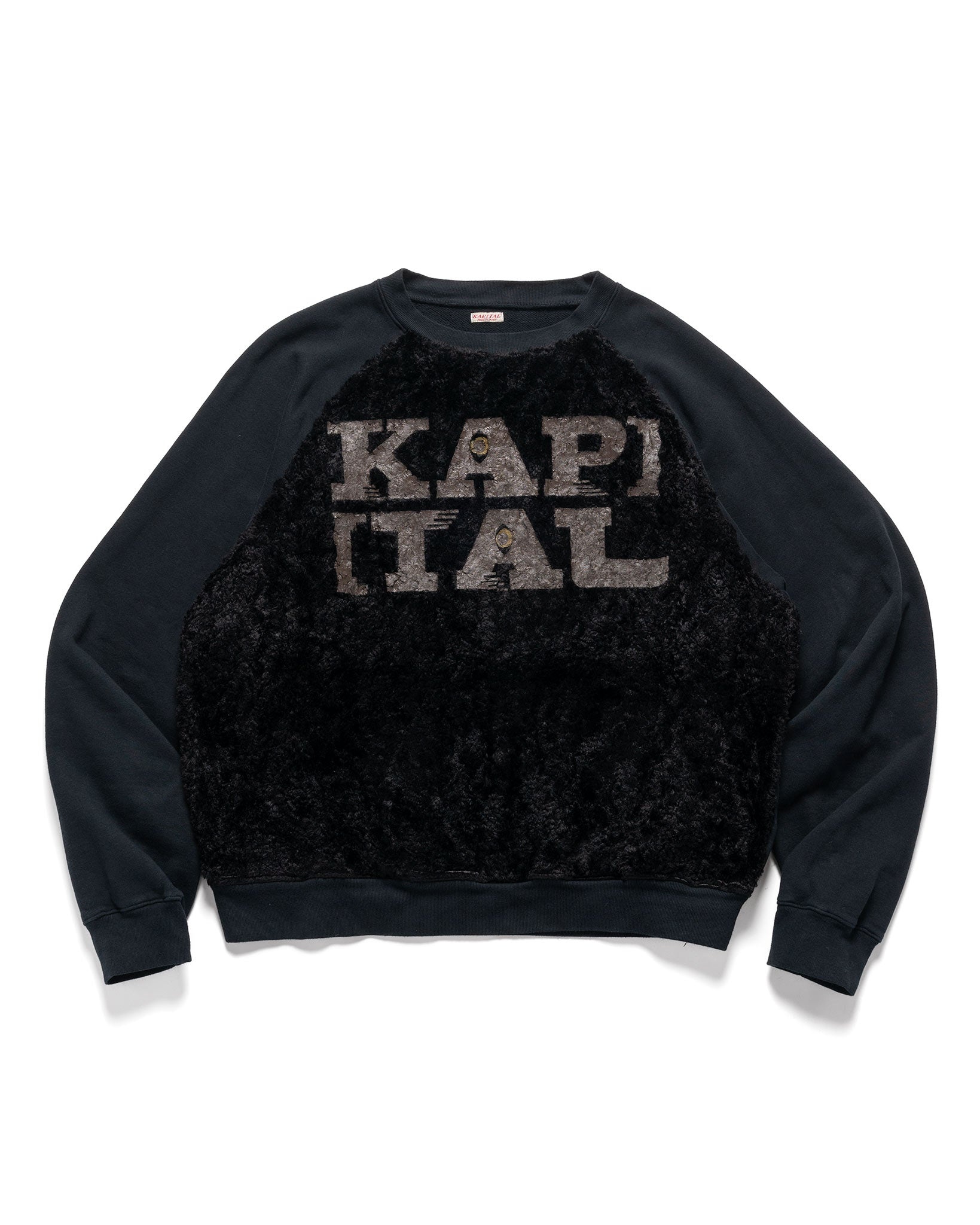 The KAPITAL 30/-SWTxFur GRIZZLY SWT (SPEAKEASY KAPITAL) is a luxurious take on the classic sweatshirt, combining bold design with premium materials. Featuring soft fur panels on the front, adorned with a unique bracket logo and eye motif, this sweatshirt exudes a distinct aesthetic. Made from 100% cotton with fur parts crafted from a rayon-cotton blend, it’s finished with raglan sleeves for a relaxed, comfortable fit. DETAILS - K2411LC120 - Body: 100% Cotton - Fur: 80% Rayon, 20% Cotton - Relaxed fit - Crewneck design - Raglan sleeves - Soft fur front panel - Front printed bracket logo and eye motif - Ribbed neck, cuffs, and hem - Made in Japan