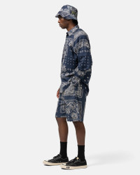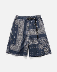 Straight-Leg Belted Bandana-Print Patchwork Cotton-Twill Shorts Navy